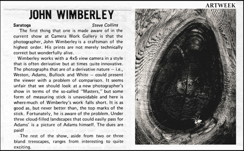 “I heard that Ansel Adams was speechless when he first saw Wimberley’s photographs, and for days couldn’t stop talking about their richness & beauty.” --Robert Burrill - Photo, Educator. |